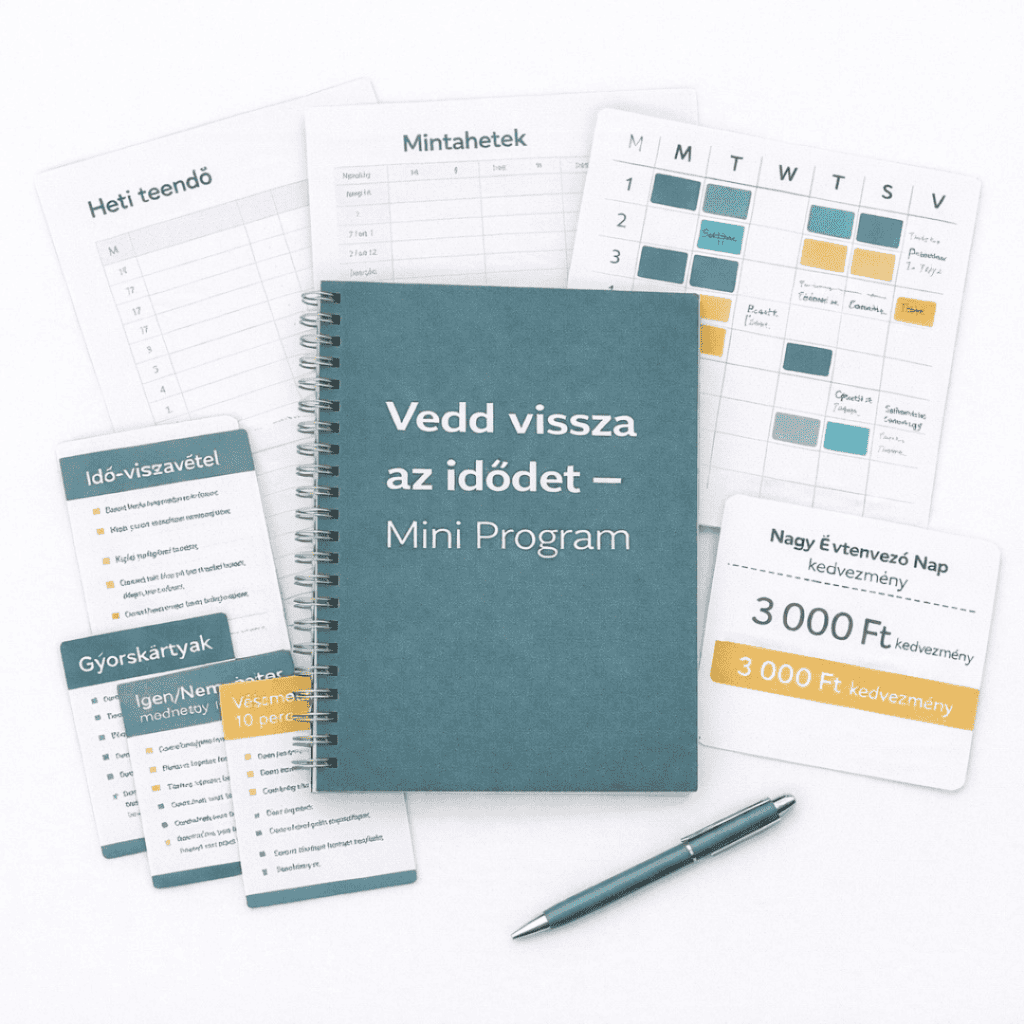 A Vedd vissza az idődet – Mini Program pont azért született, hogy ne egy újabb elméleti tippet kapj, hanem egy emberi, vállalható mini rendszert a saját napodra.